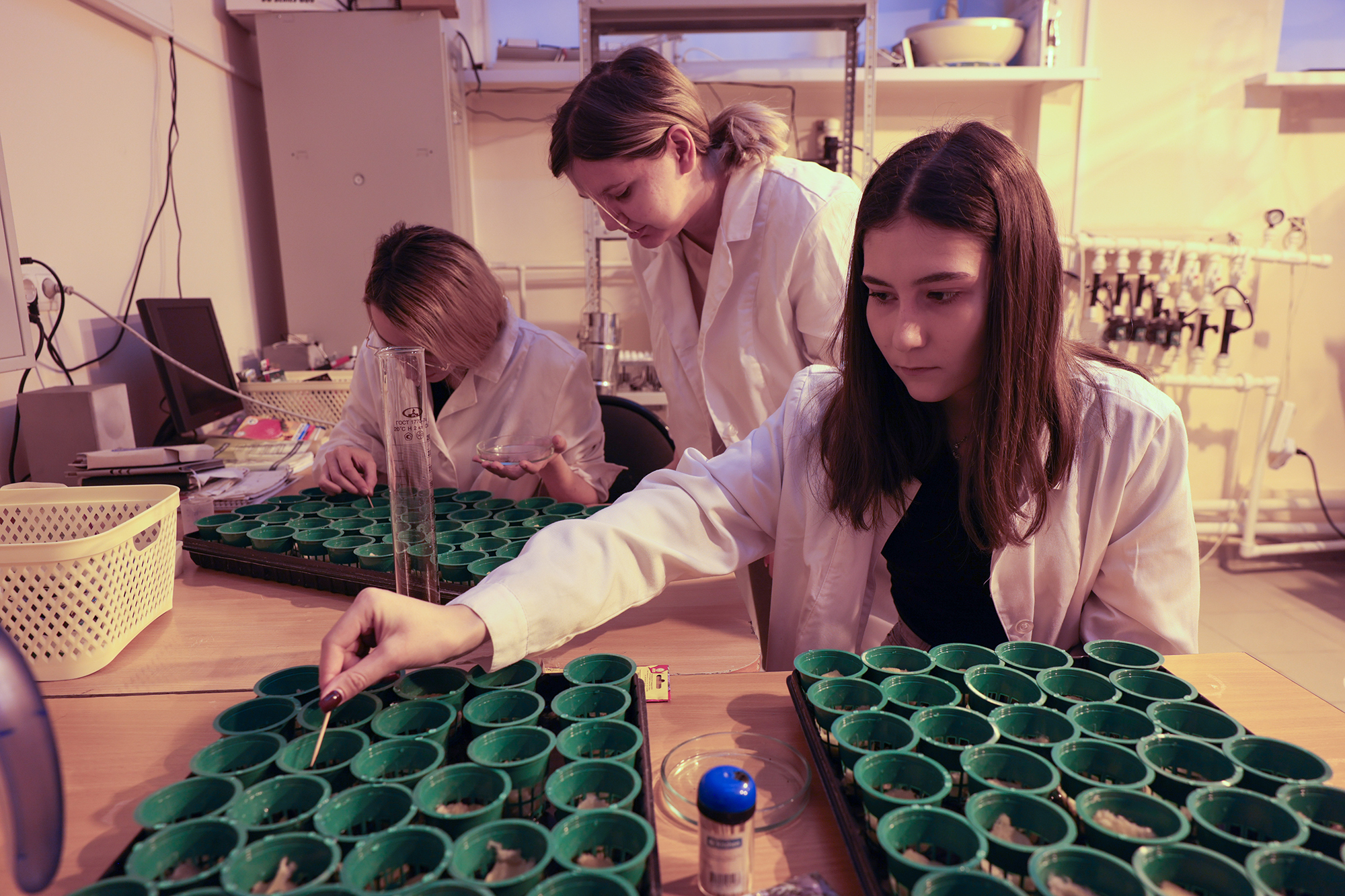 Губернатор оценил оборудованные аудитории и лаборатории, в том числе возможности применения на практике спутниковых технологий. В лаборатории селекции и оригинального семеноводства Михаилу Котюкову презентовали селекционные разработки по картофелю, сое, чине огородной, фасоли, а также способ микроклонального размножения картофеля. Лабораторно-тепличный комплекс университета является ведущим научно-образовательным центром региона в сфере АПК. В вузе есть все необходимое, чтобы вести семеноводство на мировом уровне.